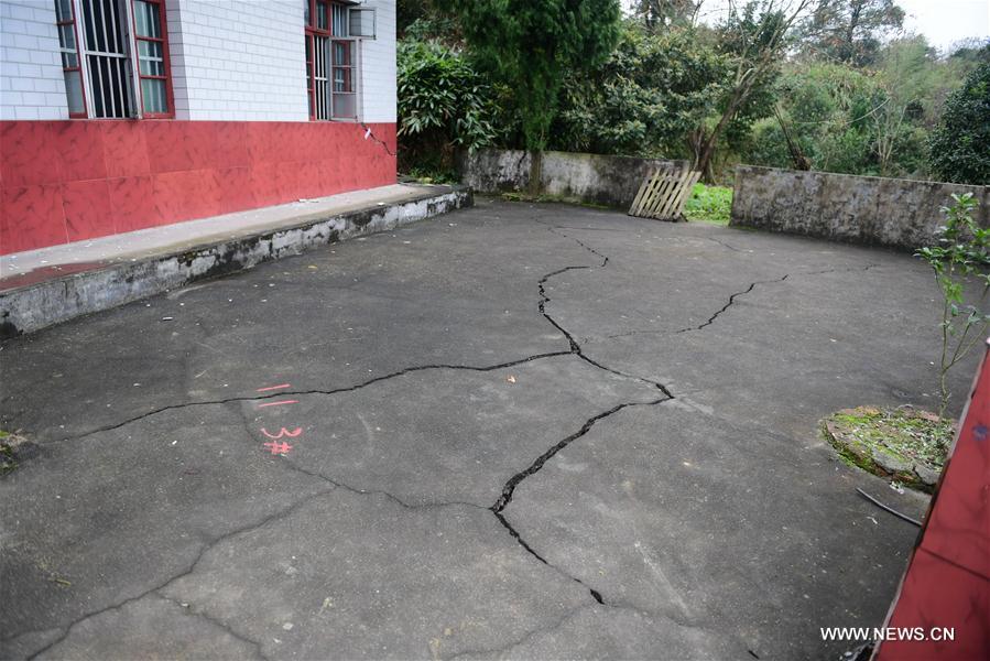 Cracks are seen as the ground sank due to a coal mine flooding accident in Mosha village, east China's Jiangxi Province, Nov. 24, 2016. The falling underground water level resulted from the flooding coal mine accident caused the ground of the village to crack and sink. All residents of the village have been safely evacuated. A flooding accident occurred at 23:10 p.m. Tuesday in a coal mine shaft in Yuanzhou District of Yichun city in Jiangxi. (Xinhua/Zhou Mi)