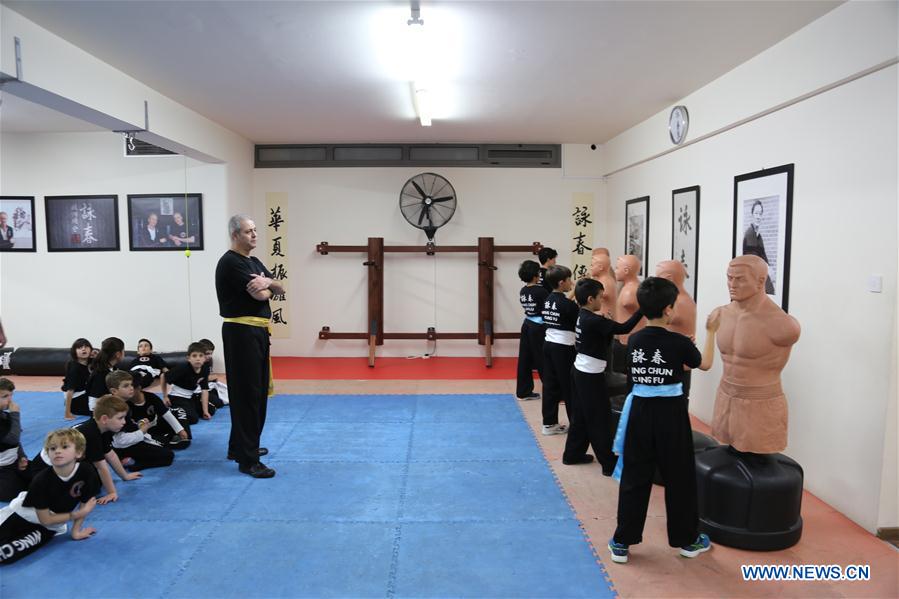 Sifu Yiannos Christoforou teaches Wing Chun Kung Fu at his acadamy in Nicosia, Cyprus, Dec. 5, 2016. Christoforou started to learn Wing Chun Kung Fu in 1989 at the age of 21 from German Wing Chun master Philipp Bayer, who was from Ip Man lineage. He opened his academy in Nicosia six years ago and has 50 trainees currently, 30 adults and 20 kids. Wing Chun Kung Fu is a branch of Chinese Kung Fu which was originated from southern China hundreds of years ago. [Photo: Xinhua]