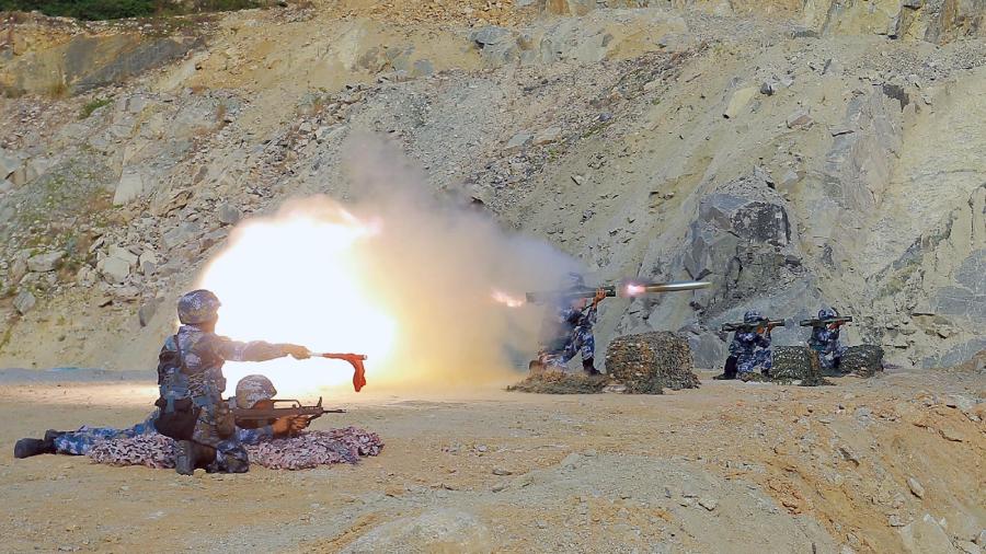 Marines fire the PF-98 120mm anti-tank rockets during a live-fire training exercise. A special operations regiment of the PLA navy conducted a year-end training exercise in early December to test the troops' capablities. (81.cn/ Sun Hongtao, Li Youtao)