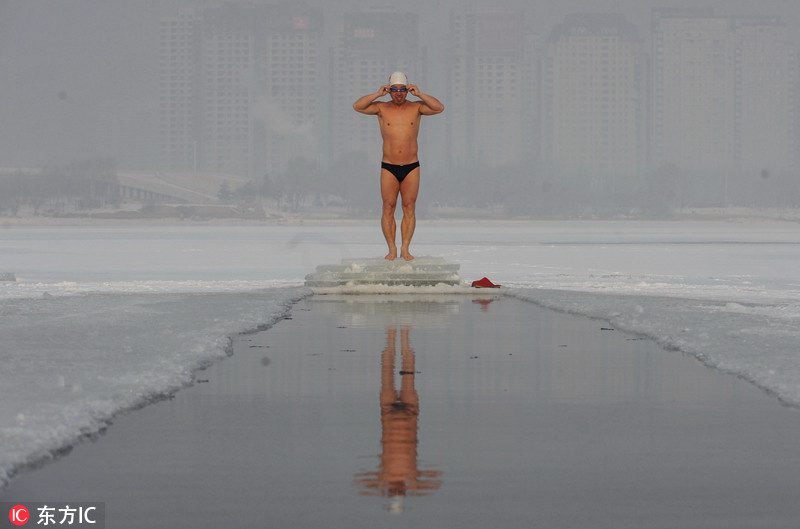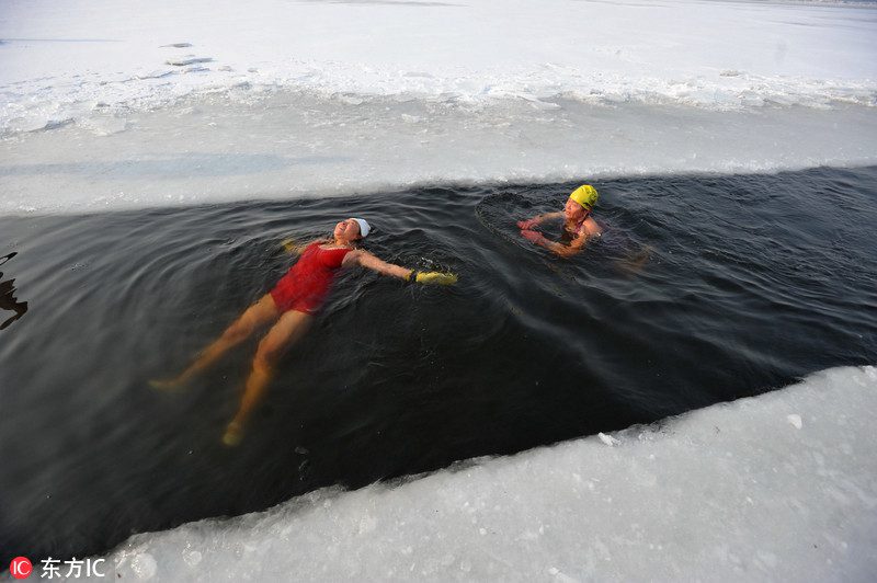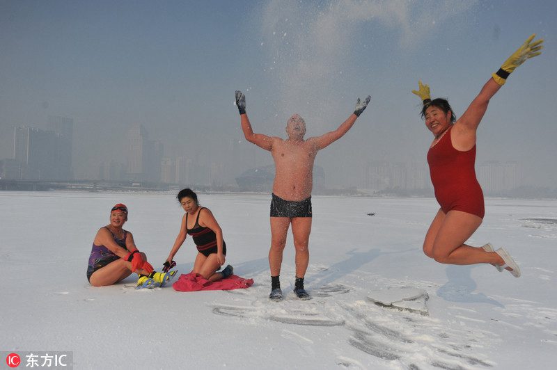The temperature dropped to minus 19 C in Shenyang, Liaoning province, but the allure of a warm blanket apparently held little appeal for a group of middle-aged and elderly swimmers, who instead chose to exercise in the chilly waters of the Hun River.