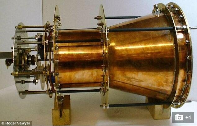 A fuel-free engine, described as 'impossible' to create, may now be a step closer to reality, according to leaked Nasa documents. Pictured is a prototype of the EMDrive