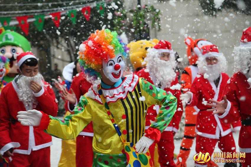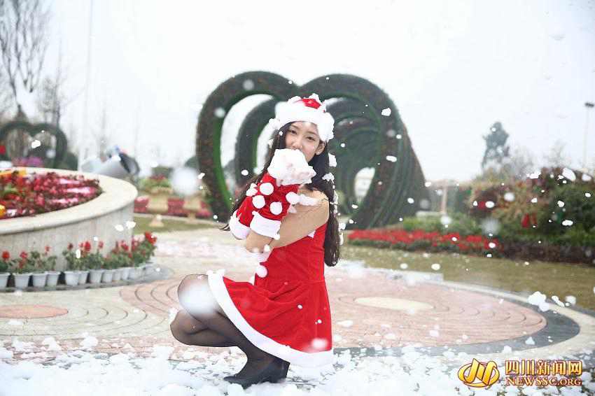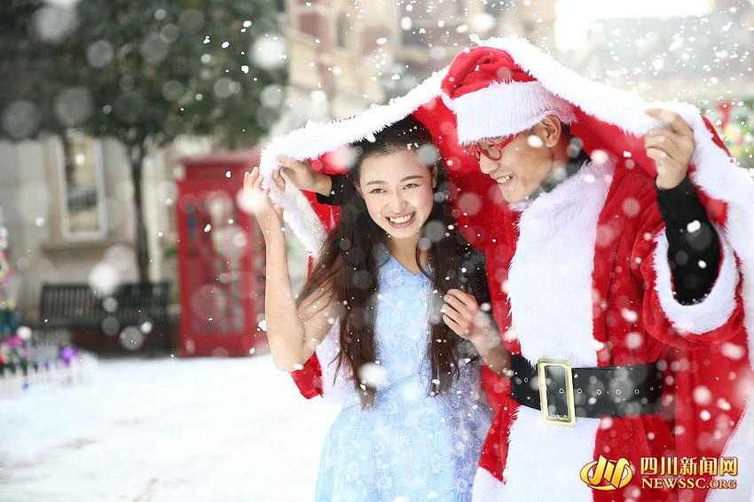 A series of photos showing college students celebrating Christmas by playing in artificial snow has recently caused a sensation online.