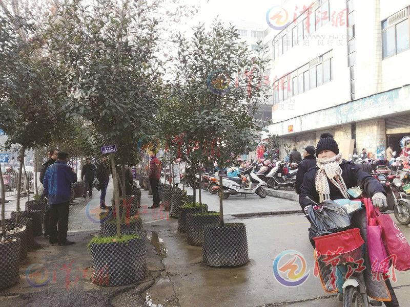 "Mobile forests" are a sample elaborately designed by Xiangyang's urban management department for city appearance and order management around transferred markets. So far 1,000 trees, including photinia fraseri, crape myrtle and sakura, have been in place. If effective, this practice will be extended to other transferred markets in the downtown.