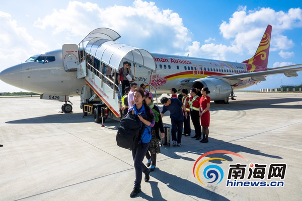 Passengers get off a charter flight at Yongxing Airport in Sansha city of south China's Hainan province on Thursday, January 26, 2017. [Photo: hinews.cn]