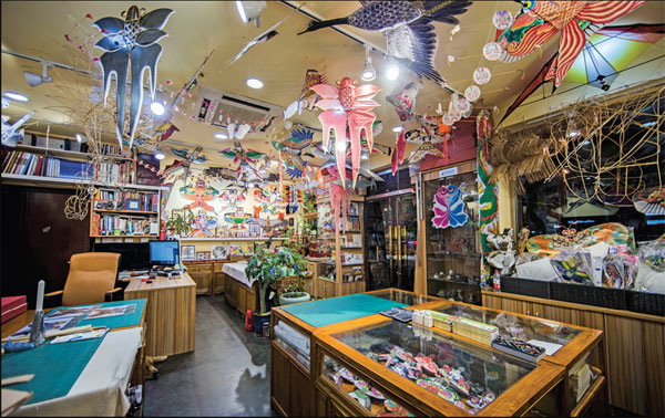 Liu Bin's kite shop, San Shi Zhai Kites (Three-Stone Studio), at Di'anmen street in downtown Beijing.