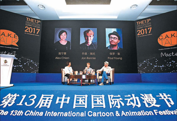 GUESTS share opinions at the C.A.K.E. TALK Master, held on April 26 as a major activity at the 2017 China International Cartoon and Animation Festival. Provided to China Daily