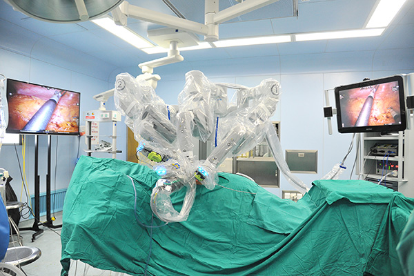 “The Da Vinci robotic surgical system has a magnified 3D view, a flexible artificial arm, and a direct display of mechanical movements. All this helps avoid human blind spots,” Wang said. “Because of the 3D eyepiece, doctors can keep veins and nerves within the surgical region intact, thus preserving their biological functions as much as possible.”