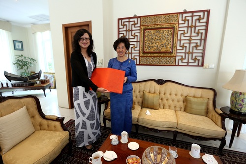 Arunrasmy and her husband also hailed the time-honored friendship between the two countries. The Chinese envoy Zhou Daguan in Yuan Dynasty had stayed in Cambodia for a year, and his work, The Customs of Cambodia, has become the most important historical material to study Angkor.