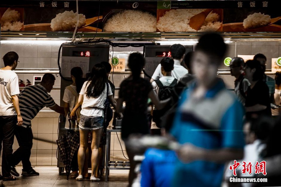 At South China University of Technology, students can enjoy rice served by an automatic vending machine. The machine can place rice into a bowl without spilling a single grain in just two and a half seconds. Its warming function also maintains the flavor of the rice.