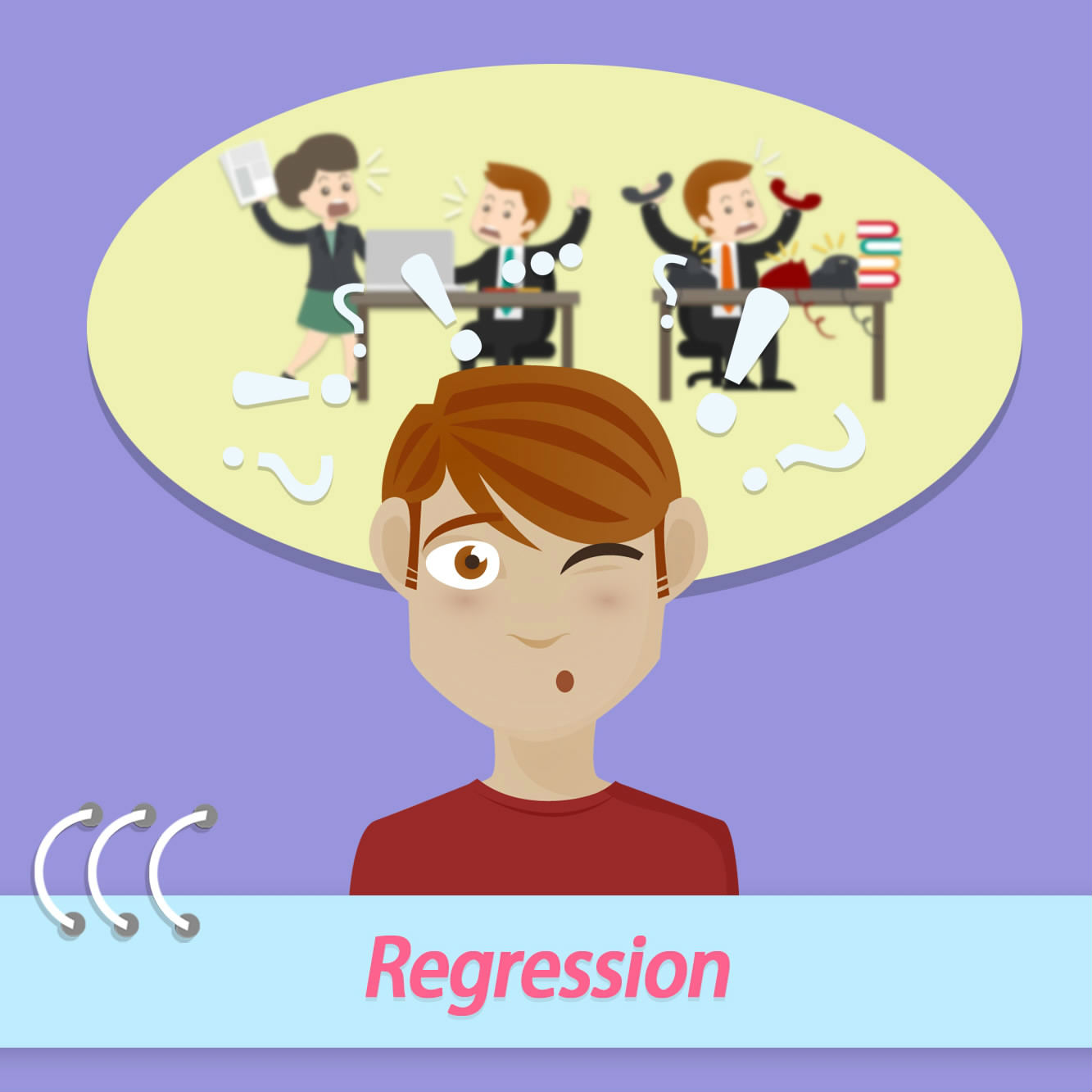 A contemporary, short-term regression can be considered as normal mental regulation. However, regression can be deemed as a psychological problem as long as people constantly use immature ways to cope with harsh circumstances, or utilizing their childish acts to arouse others’ sympathy.