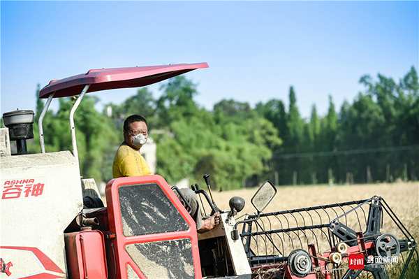 By driving combined harvesters, wheat workers in Chengdu, Sichuan province can secure an annual income of over 100,000 RMB ($15,000). Workers must obtain a driver's license before they can be hired for labor on farms. In the busy season, they usually work from morning to night, resting only to eat. Though the work is hard and hot, many farmers regard operating combined harvesters as a new and lucrative profession.