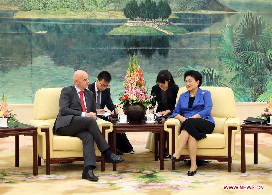 BEIJING, June 15 -- Chinese Vice Premier Liu Yandong met with FIFA President Gianni Infantino at the Great Hall of the People here on Wednesday.