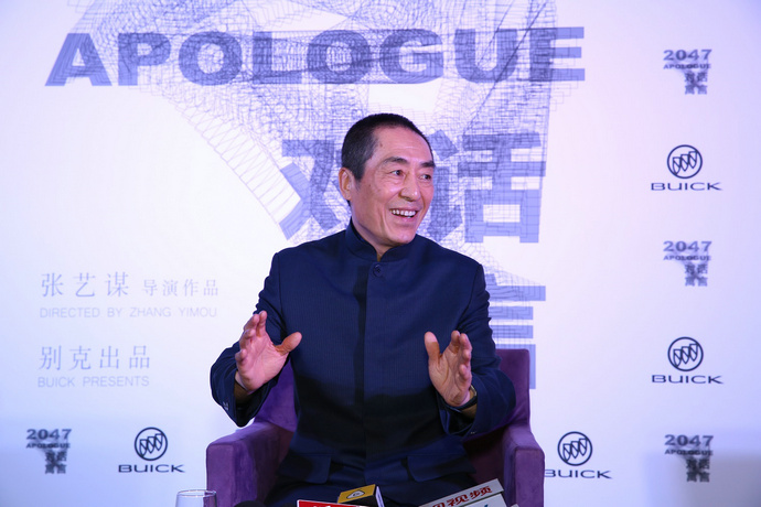 Zhang Yimou at the press conference of "2047 Apologue" premier (photo/Xinhua)