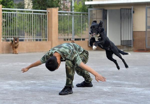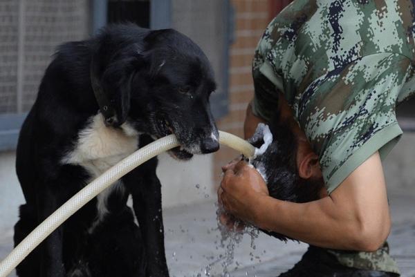 With the help of a trainer, Zhang Binbin, Radar quickly learned new skills, and in 2014 won second place in a skill competition for military dogs. In addition, Radar was an internet celebrity of sorts. A picture of the dog washing Zhang's hair with a hose that it held in its teeth went viral last June. It helped to highlight the close relationships between dogs and their trainers.