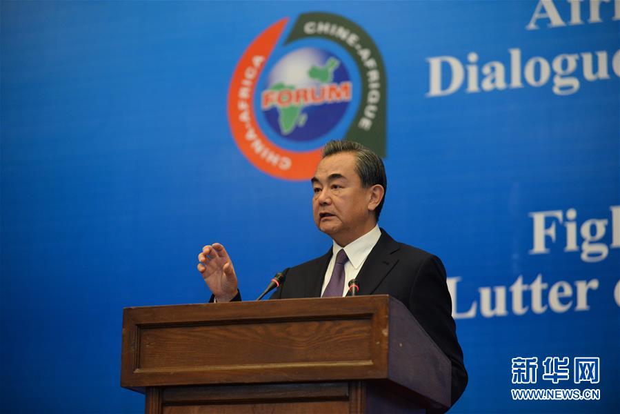 Chinese Foreign Minister Wang Yi delivers a speech at the China-Africa high-level dialogue and think tank forum on poverty reduction and common development (photo/Xinhua)
