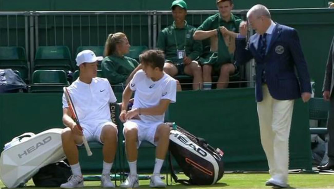 A men’s doubles match of Wimbledon’s Junior Group was suspended on Wednesday because of the underwear worn by a pair of players failed to match the All England Club’s all white dress code.