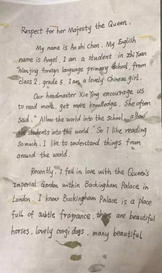 Jin’s mother helped translate the letter into English, and sent both the original letter and the translation to London on May 8. Two months later, they received a reply from Buckingham Palace. The letter talked about the living and working conditions of the Queen at an early age, and included a detailed introduction of the Palace.