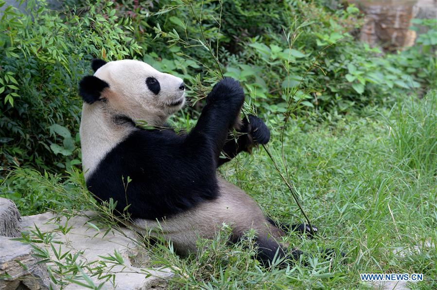 Panda "Mei Ling" eats bamboo at the Nanchang Zoo in Nanchang, capital of east China's Jiangxi Province, July 17, 2017. (Xinhua/Peng Zhaozhi)