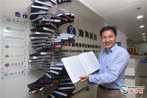 He Jiankui shows a "gene book". (Southcn.com/Zhu Hongbo)