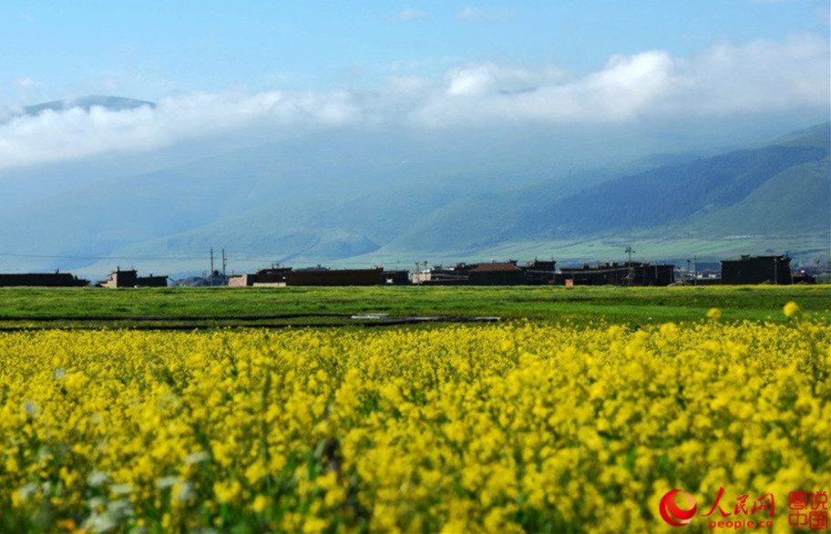 Countless rape flowers mix with the blue sky and green tress to create the most wonderful melody in the Ruoergai Grassland, located in the Aba Tibetan and Qiang Autonomous Prefecture of Sichuan Province.