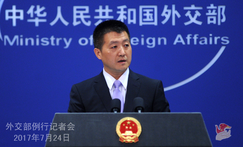 Chinese Foreign Ministry spokesperson Lu Kang is seen at a reguar briefing on July 24 in Beijing.