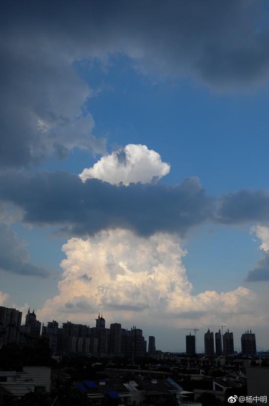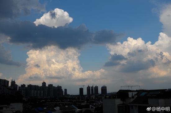 Photos capture an amazing sight of clouds resembling "giant pandas" in the sky above Chengdu, Sichuan, on July 25.