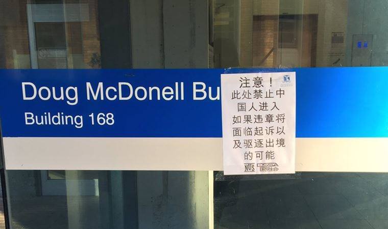 The posters, found in the most popular sites in the two universities, warned that “Chinese people are not allowed into the building, otherwise they would be indicted or deported". Logos from the National Union of Students, the Chinese Student and Scholars Association at the University of Melbourne, and the Monash Chinese Student Association, were found at the bottom of the posters.