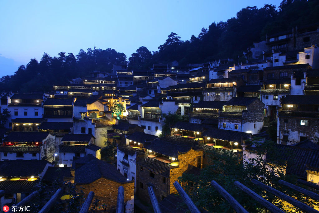 The night view of Wuyuan in Jiangxi province, well-known as China's most beautiful countryside, is shown in a photo taken on July 27, 2017. [Photo: IC]