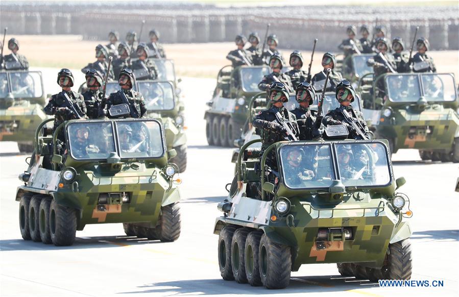 Photo taken on July 30, 2017 shows a formation of special troops during a military parade at Zhurihe training base in north China's Inner Mongolia Autonomous Region. China on Sunday kicked off a grand military parade to mark the 90th founding anniversary of the People's Liberation Army. (Xinhua/Pang Xinglei)