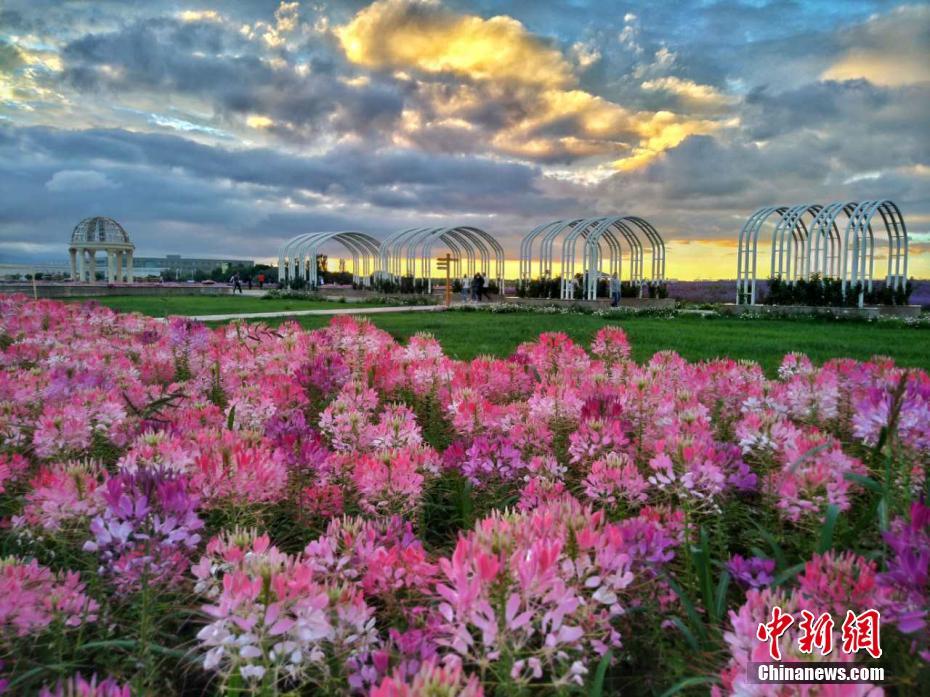 Stunning scenes at Zijinyuan scenic spot in the city of Jin Chang, in Gansu Province on July 27, 2017. Following several days of continuous drizzle, the weather suddenly cleared, providing visitors with a magnificent visa as dusk fell. [Photo: Chinanews.com]