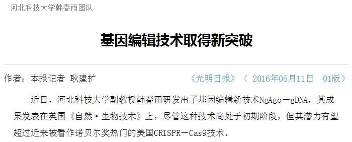 The paper published in the journal's May 2016 issue, describes a fast gene-editing method, named NgAgo, that's much more convenient than current CRISPR system.