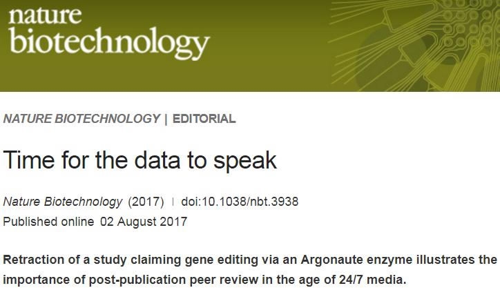 Editorial "Time for the data to speak". /Screenshot from Nature Biotechnology