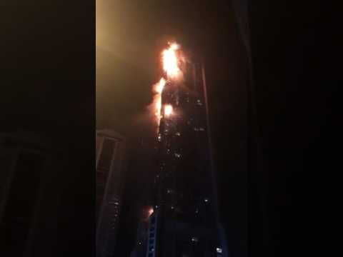 A fire burns in a residential skyscrapper in Dubai. [Photo: boppinmule via Twitter]