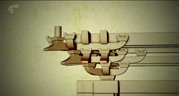 A simulated model of dougong. [Photo/Screen capture of Secrets of China's Forbidden City]