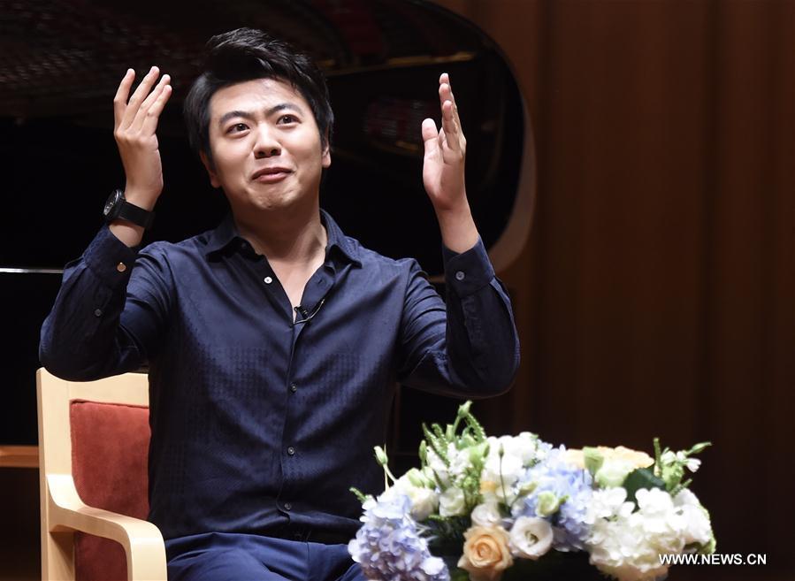 Pianist Lang Lang attends an educational session at National Center for the Performing Arts (NCPA) in Beijing, capital of China, Aug. 14, 2017. As the season's Artist-in-Residence, Lang Lang shared his story and piano skills with children at an educational session in the NCPA on Monday. (Xinhua/Luo Xiaoguang)