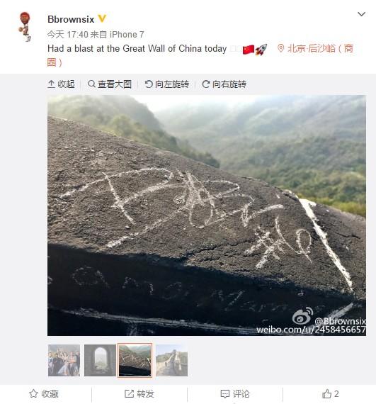 Apart from Chinese tourists, foreign visitors, and even celebrities, have been accused of taking part in the Great Wall graffiti craze. In 2016, NBA star Bobby Brown posted a picture of his own signature scratched on the Great Wall, evoking angry criticism from netizens. Brown later publicly apologized for his wrongdoing, saying he “didn’t mean any harm by this.”