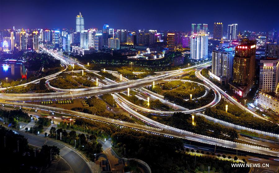 Stitched photo taken on Aug. 19, 2017 shows the morning scene of downtown in Nanning, capital of south China's Guangxi Zhuang Autonomous Region. The 14th China-ASEAN Expo will be held between Sept. 12 and 15 in Nanning. (Xinhua/Huang Xiaobang)