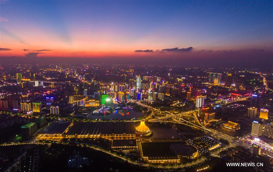 Stitched photo taken on Aug. 19, 2017 shows the morning scene of downtown in Nanning, capital of south China's Guangxi Zhuang Autonomous Region. The 14th China-ASEAN Expo will be held between Sept. 12 and 15 in Nanning. (Xinhua/Huang Xiaobang)