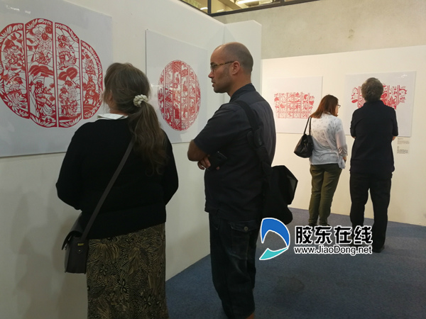People attending Jiaodong Folk Window Paper Cutting Art Exhibition (photo/www.JiaoDong.net)