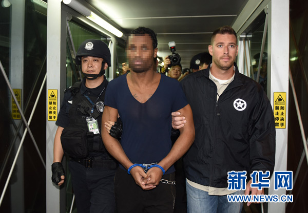 Chinese police handed over escaped robber Ferguson Naquan to U.S. police at Guangzhou Baiyun International Airport early Friday morning, the department said in a statement.