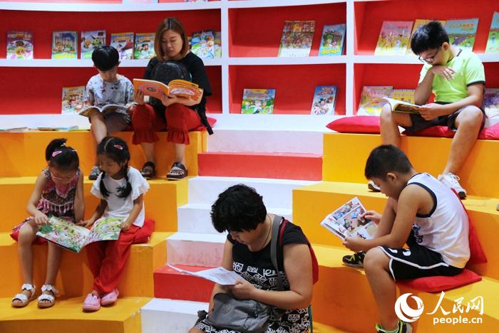 Visitors enjoy children's books at the Children and Education Hall of the 24th Beijing International Book Fair, running from August 23 to 27. (Photo/People's Daily Online)