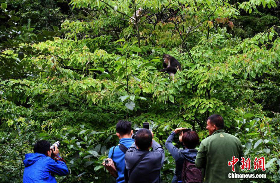 Tourists watch snub-nosed monkeys at Snub-nosed Monkey National Park in southwest China's Yunnan Province, on August 27, 2017. Covering an area of 125 square kilometers, the national park now has more than 60 rare snub-nosed monkeys. [Photo: Chinanews.com]