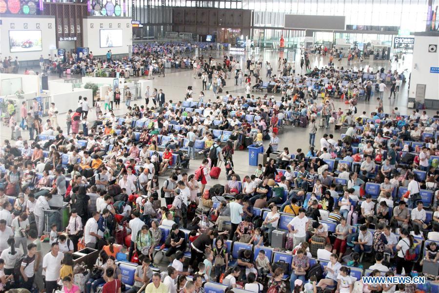 Passengers wait for trains at Suzhou Railway Station in Suzhou City, east China's Jiangsu Province, Aug. 31, 2017. China's summer transport peak period ran from July 1 to Aug. 31, when students on summer vacation had time to travel or return home. (Xinhua/Wang Jiankang)