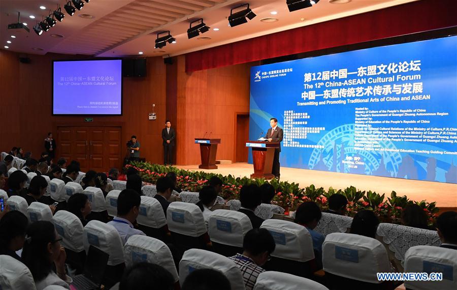 The 12th China-ASEAN Cultural Forum is held in Nanning, capital of south China's Guangxi Zhuang Autonomous Region, Sept. 11, 2017. (Xinhua/Lu Boan)