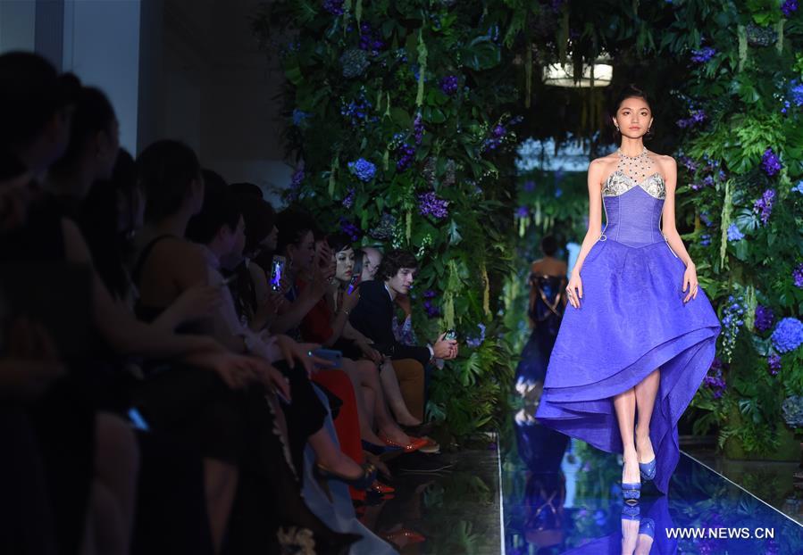 A model presents a creation during Guo Pei's Haute Couture fashion show in Beijing, capital of China, Sept. 27, 2017. (Xinhua/Luo Xiaoguang)