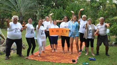 Participants of a Qigong exercise with instructor Xiaoning Lu (second from left) at the University of the South Pacific’s (USP) Cook Islands Campus on Oct 4, 2017. [Photo: USP]
