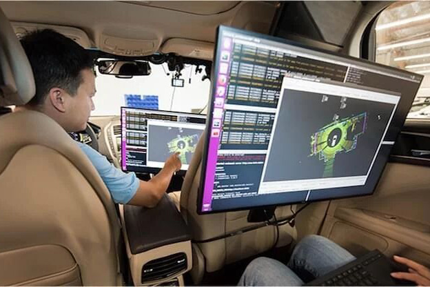 Engineers test in a self-driving car at Jingchi Corp (Photo courtesy of Jinchi Corp)
