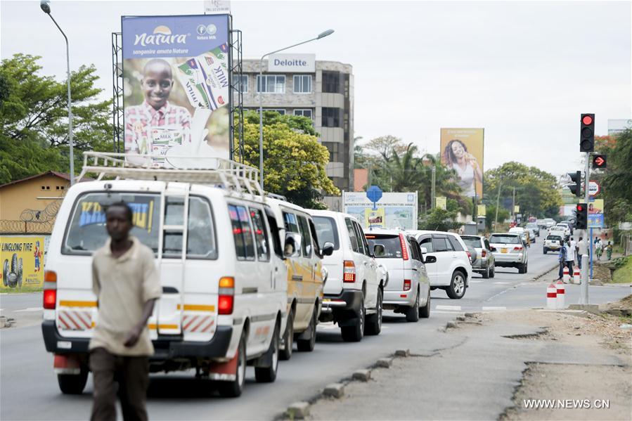 Cars wait at the red light in Bujumbura, capital of Burundi, on Nov. 5, 2017. Traffic lights in Burundi stopped functioning due to a lack of repair mechanism less than one year after being installed in 1999. Funded by the African Development Bank, STECOL Corporation, a Chinese firm focusing on engineering and construction works, started installing traffic lights at 19 street corners across Bujumbura in May. All of the traffic lights, made in China, have been put to use since August. (Xinhua/Evrard Ngendakumana)
