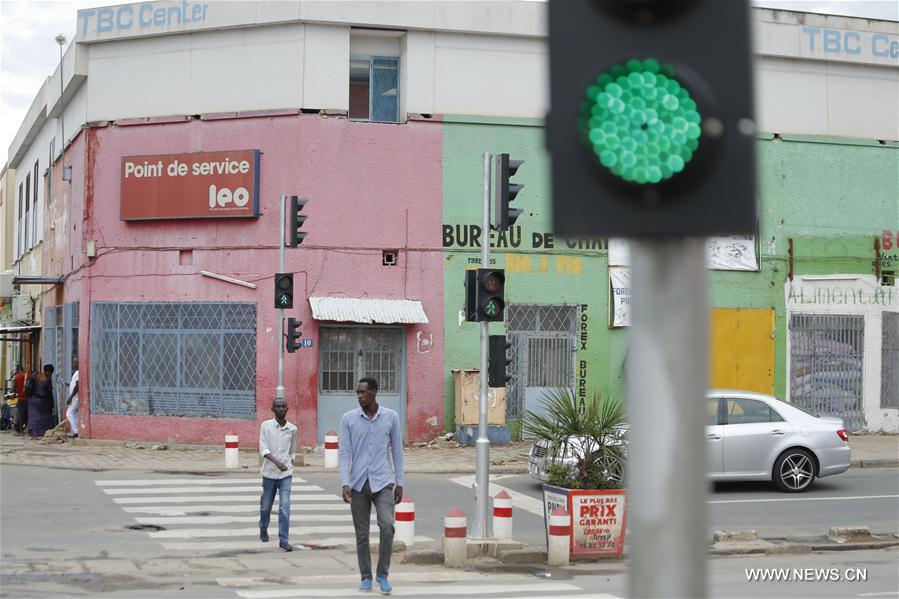 Pedestrians cross a road in Bujumbura, capital of Burundi, on Nov. 5, 2017. Traffic lights in Burundi stopped functioning due to a lack of repair mechanism less than one year after being installed in 1999. Funded by the African Development Bank, STECOL Corporation, a Chinese firm focusing on engineering and construction works, started installing traffic lights at 19 street corners across Bujumbura in May. All of the traffic lights, made in China, have been put to use since August. (Xinhua/Evrard Ngendakumana)