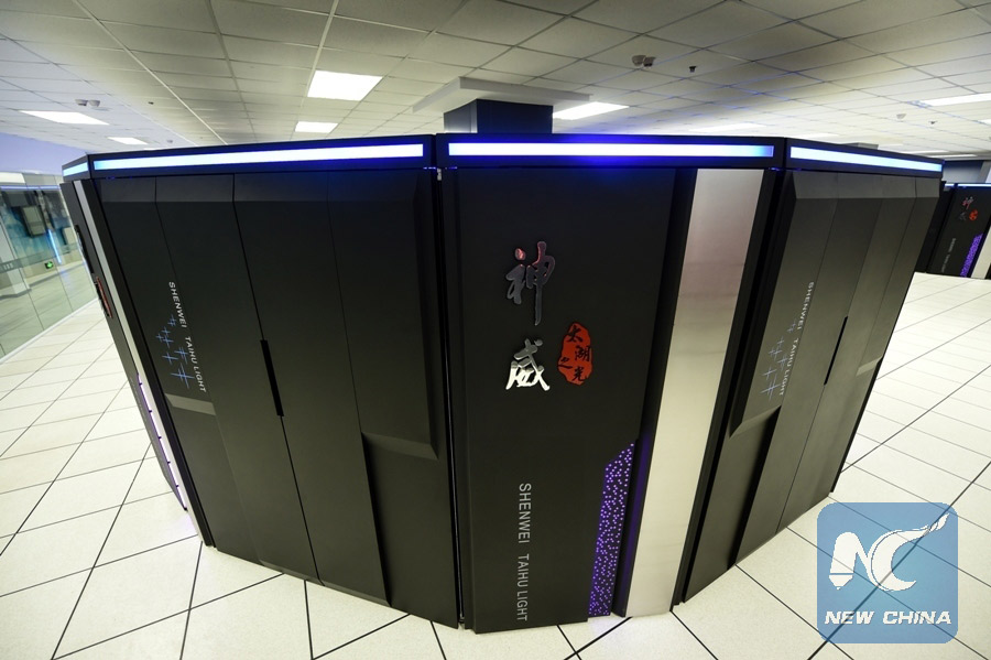 Photo taken on June 20, 2016 shows Sunway TaihuLight, a new Chinese supercomputer, in Wuxi, east China's Jiangsu Province. (Xinhua/Li Xiang)